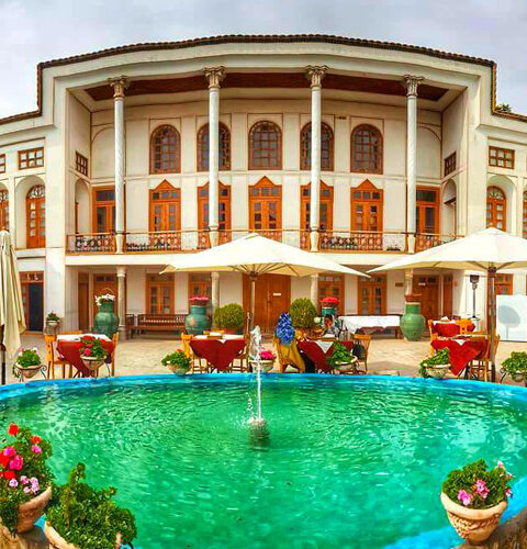 در این کافه رستوران مشتریان میتوانند در حالی که در حیاط یک خانه قاجاری نشستهاند خود را به یک وعده غذای لذیذ و یا یک نوشیدنی خوشمزه دعوت کنند.